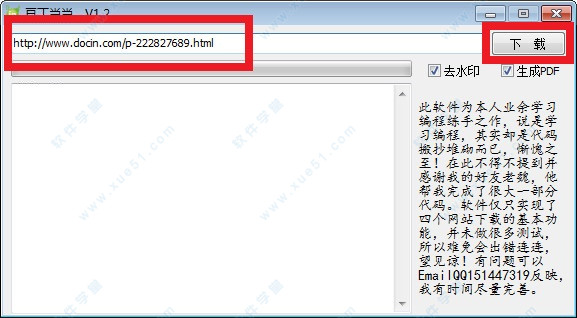 6、无需登录也无需积分,只需要将需要下载的文档的网页地址复制在软件的录入框中就可以自由下载,并最终生成pdf文件。对部分pdf文件能够提取文字生成txt。