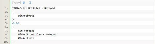 例子中首先搜索标题以 "Untitled - Notepad"(忽略大小写)开头的窗口。如果找到了就激活它;否则就启动记事本程序 ,等到窗口以出现就激活它。上例中还使用了上一次找到的的窗口 避免在每个 WinActivate 后面再次指定标题。