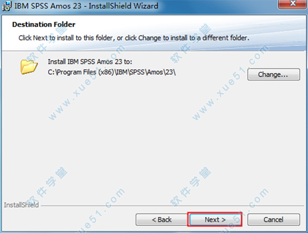 5、选择软件安装路径,点击change...可更改路径,也可按照默认设置安装路径即可