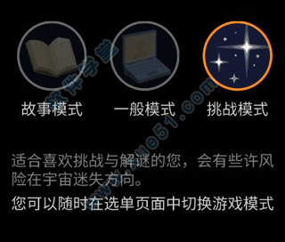 挑战模式适合喜欢挑战与解谜的您,会有些许风险在宇宙迷失方向。