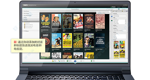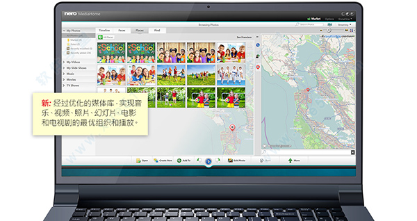 让您更上一层楼!所有媒体都存放在一处?那么这绝对是一个很好的时机,让您体验到前所未有的快速和方便。MediaHome 同时以一如既往的质量提供支持!您可以通过自动工具和各种特效美化您的照片,将照片和视频制作成幻灯片,并添加音乐、电影设计模板以及片头和片尾字幕。您可以创建音乐播放列表或者包含照片或视频的完整相册。您可以将电影拍摄和和幻灯片刻录成 DVD 视频™或带菜单的蓝光光盘™ ,这样就可以在 DVD 或蓝光光盘™播放器上进行播放了。借助集成的 Gracenote® 技术,您可以刻录音频 CD 和 MP3 光盘,甚至包括原版专辑封面。