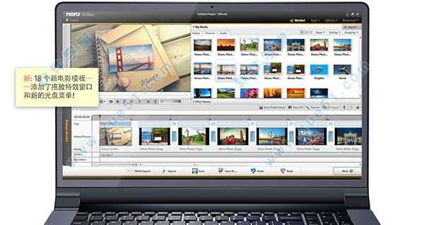 一、导入、制作和编辑这一视频剪辑程序现在为您的电影项目提供充分的创造力、简单的操作和最佳的效果。通过快捷或高级视频编辑功能,800 多种特效和电影模板,包括特效拖放窗口吸引您的观众。宽屏电视中的黑框现在也已成为过去时。通过边框一键消除功能,提升您的照片和视频素材,在大电视屏幕上智能呈现完美的电影体验。Vertical-Video-Ready:您的智能手机上的竖屏视频和照片,现在可以方便地作为竖屏视频导入和编辑,并借助新的竖屏视频模板完美应用在场景中。