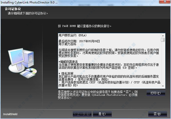 3、来到用户许可协议界面,点击【是】进行下一步操作。