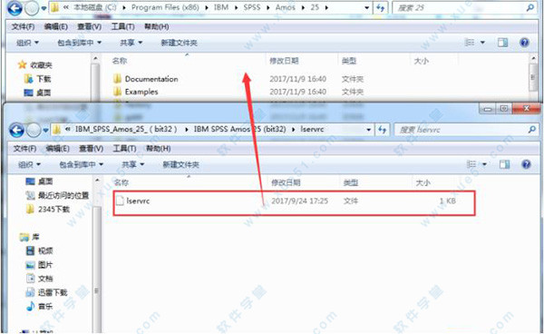 6、最后将lservrc文件夹下的“lservrc”许可证文件复制到安装目录下覆盖源文件,默认路径为C:\Program Files (x86)\IBM\SPSS\Amos\25,即可完成破解。