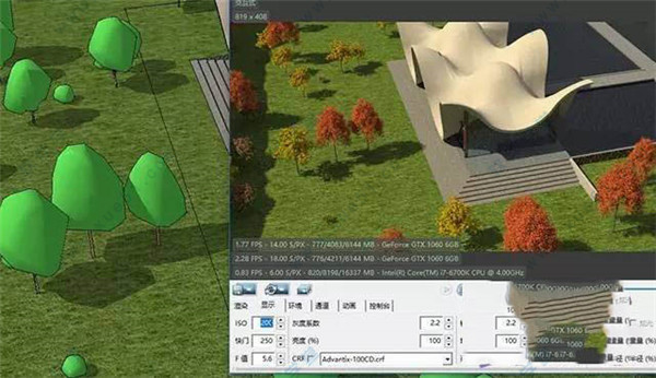 将完美渲染呈现复杂的树木、草、汽车及精致的家具