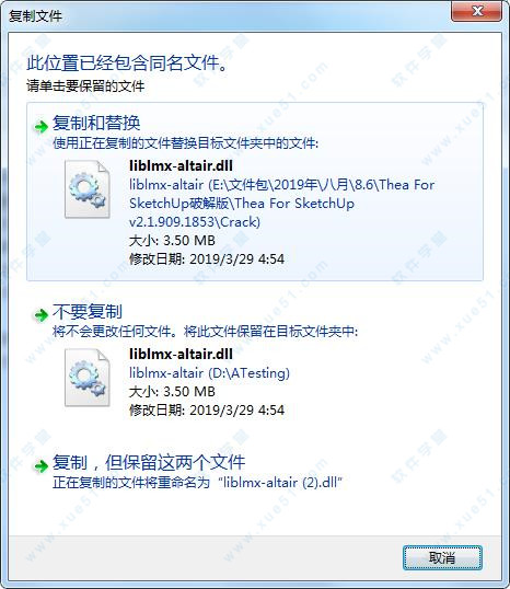 2、双击.exe主程序运行,根据提示完成安装后将Crack文件夹下的“liblmx-altair.dll”破解补丁复制到该软件的安装位置中,并在出现的提示中选择复制和替换这一项即可完成破解。