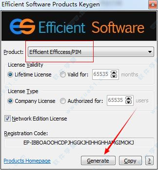 10、运行注册机,在下来中选择Efficient Efficcess然后点击注册生成注册码。