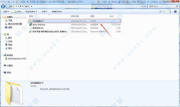 1、安装完成后先不要运行软件,回到之前下载的安装包目录,双击打开“汉化破解补丁”文件夹;