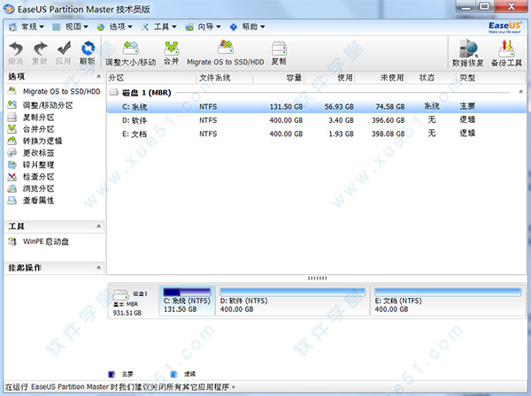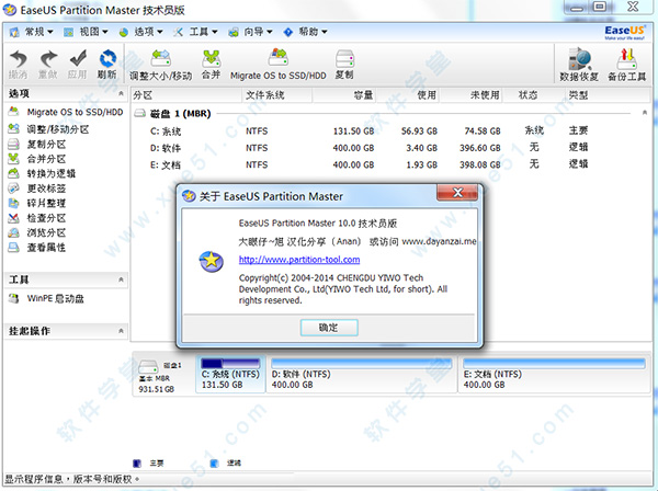 easeus partition master中文破解版是在官方推出的版本上利用破解文件将软件安装目录下的文件进行复制和替换使用,不仅将软件汉化成中文界面,而且在使用期限上也免除了官方使用的限制,同时提供了所有硬件RAID的支持,与固态硬盘驱动器实现了完美的兼容和使用。有需要的用户可以在本站下载!