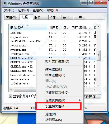 然后打开“任务管理器”,在“进程”选项卡里找到刚才打开的ORTHOS进程,如下图红框: