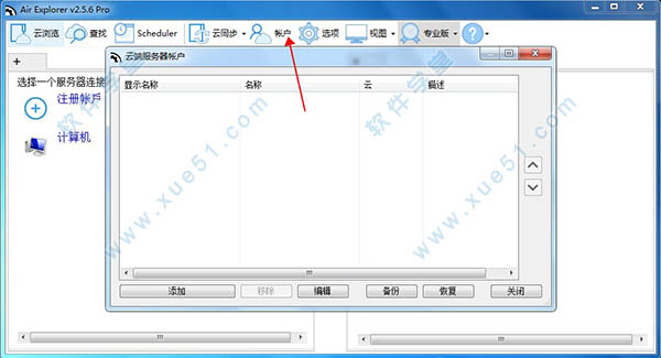 首次打开软件时,会出现一个窗口来添加云服务器帐户。