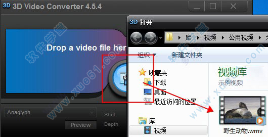 1、打开3D视频转换器,单击“打开”按钮选择要转换为3D的视频文件,或者只是将视频文件拖放到程序界面上。