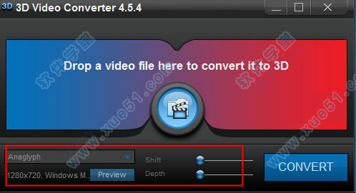 视频播放器,你可以根据需要初步调整3D Shift和3D Depth的级别,以查看未来3D视频的预览。