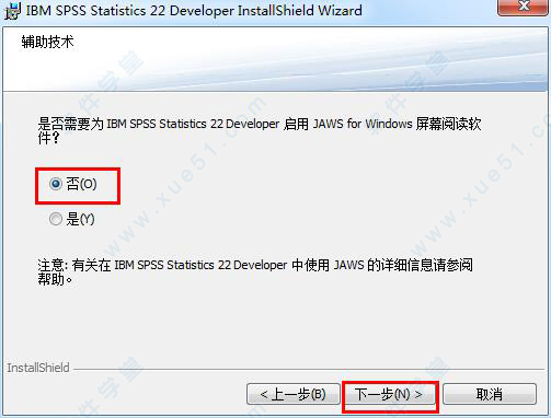 5、辅助技术,选择“否”。