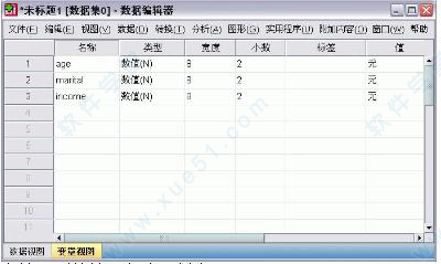 1、单击“数据编辑器”窗口底部的变量视图选项卡。