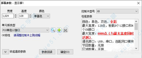 2、首先我们新建一个工程,创建初始首先是确定led屏幕的大小和控制器的选择。