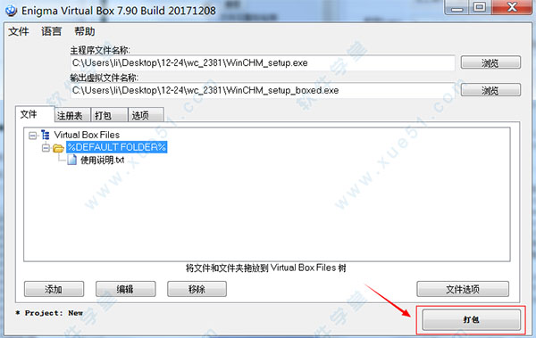 虚拟文件打包功能不需要懂得任何额外的编程代码。只需要运行该工具,浏览您需要打包的文件,再添加到打包目录列表中,最后点击打包(保护)即可!