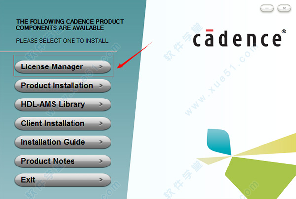 1、在本站下载好安装包,双击运行“setup.exe”程序,在软件安装方式界面中选择“license manager”进行安装;