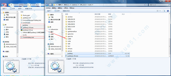 4、重复打开安装文件中的crack文件,将pubkey、pubkey1.3.exe和ToolsPubkey.bat放到C:CadenceSPB_16.6tools目录下;(如果运行该文件出现can not open或者是 diff pubkey等字样时不必惊慌,文件还是能够破解的,继续运行下面的步骤);