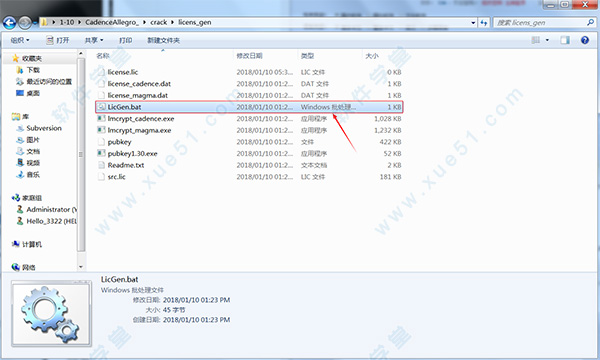6、点击crack文件夹下的licgen.bat文件会生成一个“license.lic”文件在crack文件夹下;