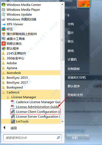 12、在开始栏中运行License ClientConfigurati on Utility;