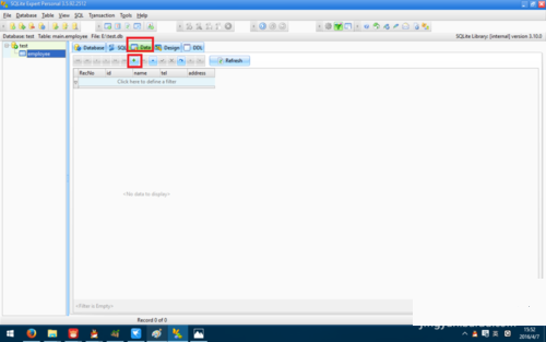 2、打开sqlite expert ,选择建好的数据库文件(或者是导入的已存在的db文件,或者是自己新建一个.db数据库文件).