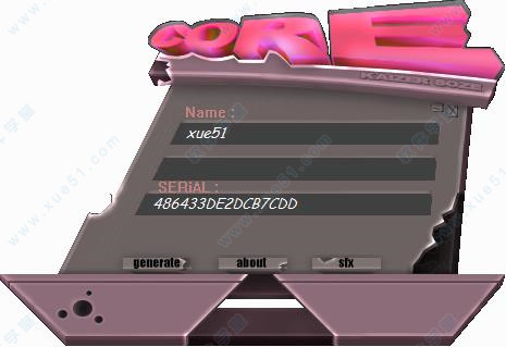 9、运行Keygen-CORE文件夹下的“Keygen-CORE.exe”注册机程序,输入用户名获取注册码然后填写到软件中即可完成激活。