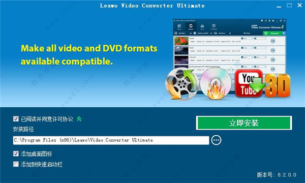 Leawo Video Converter Ultimate(狸窝全能视频转换器)是一款功能非常全面的视频转换器,能够将视频转换为多种格式。它也可以用来翻录蓝光光盘和数字视盘。有了这个有用的应用程序,某管视频也可以轻松下载。它支持多种音频和视频文件格式,能够进行批量处理这意味着您可以同时处理不同的文件,从而节省了您的大量宝贵时间。使用Leawo Total Media Converter,除了转换文件之外,您还可以将一个视频或音频文件分割成几个部分,以及将多个音频/视频文件合并成一个整体。leawo Total MeDIa Converter Ultimate还允许您从某管下载视频内容,以便您可以离线观看您最喜爱的视频。它有一个非常全面的下载管理中心,可以让你暂停或恢复任何下载。有一个集成的某管