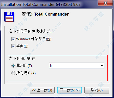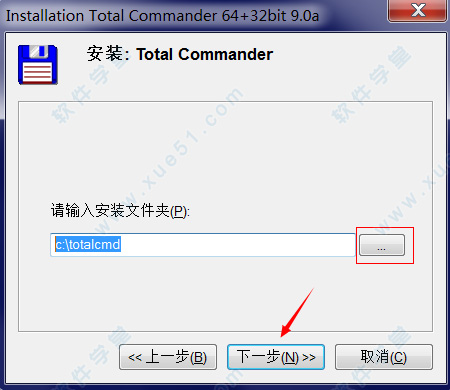 2、自定义软件安装目录,默认安装路径为“c:totalcmd”,安装路径不要选择带有中文符号的路径,点击“下一步”进行安装;