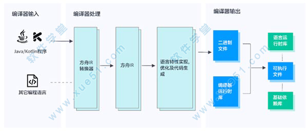 华为方舟编译器是一款功能丰富的多语言联合优化编译器,包括编译器中间表示(IR)和语言编译实现,同时搭配编译器其他二进制组件,实现Java程序到aarch64汇编指令的编译过程,开发者可基于开源代码+二进制,编译构建出编译器工具链,尝试对Java程序进行编译。它用空间换性能,直接将编译器的代码优化搬到了开发者环境,不再被手机端的硬件资源所限制,为代码优化提供了无限可能,并且在支持多平台的同时,根据设备特征提供便捷的开发与部署策略提升效率。华为方舟编译器是为支持多种编程语言、多种芯片平台的联合编译、运行而设计的统一编程平台,包含编译器、工具链、运行时等关键部件,通过多语言统一IR表示,可实现应用中多种编程语言联合编译优化提升性能。