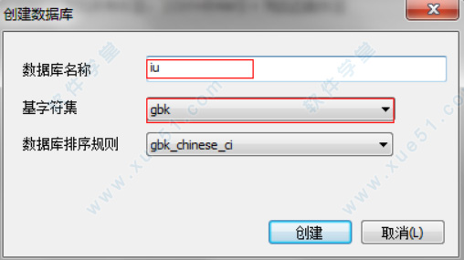 第二步,填写数据库名称,选择默认字符集等后点确定即可。