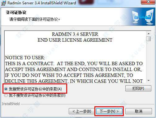 一、被控制端1、在本站下载好软件的安装包,将其解压,打开“RadminSever”文件夹,双击运行里面“rserv34cn.exe”,开始安装被控制端,点击“下一步”。