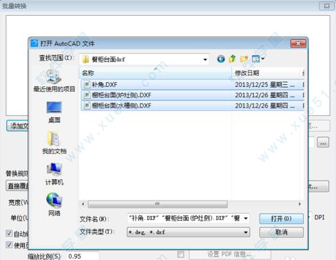 5、找到“已定路径存放批量CAD图纸的文件夹”,托选或按CTRL键多选,也可直接选择“添加多个文件”,将要转换的文件添加到被选框内,按“开始转换”,启动批量转换开始。