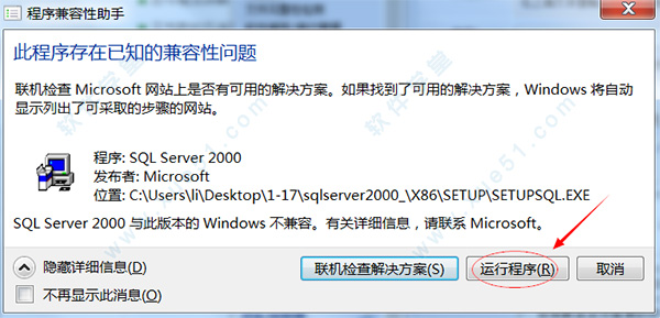 2、运行程序时系统会弹出兼容性问题,我们忽略该提示,直接点击“运行程序”;