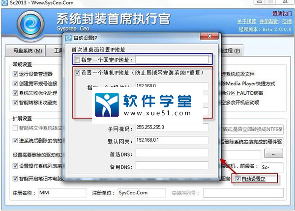 13、自动设置IP地址:预设目标系统的IP地址,本模块分固定IP和随机IP的设置。