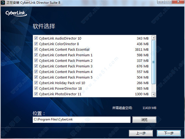 5、勾选上需要安装的产品组件并选择好安装路径,然后点击下一步。