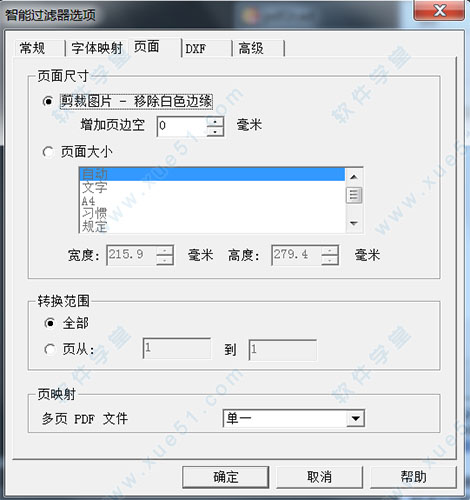 5、设置转换后的页面纸张大小以及是否移除白色边缘;