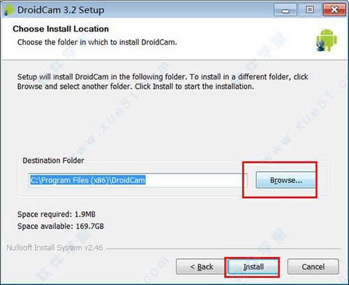 3、单击“browse”可更换安装位置,单击“install”开始安装,直至安装完成;