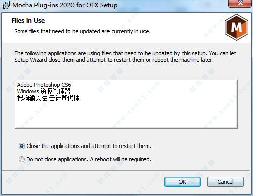 5、安装过程中会弹出提示,默认操作关闭一些软件即可。