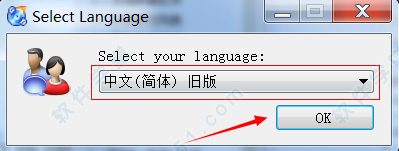 1、运行软件,在语言选择框中选择“中文(简体)”语言种类进行使用,点击“ok”按钮;