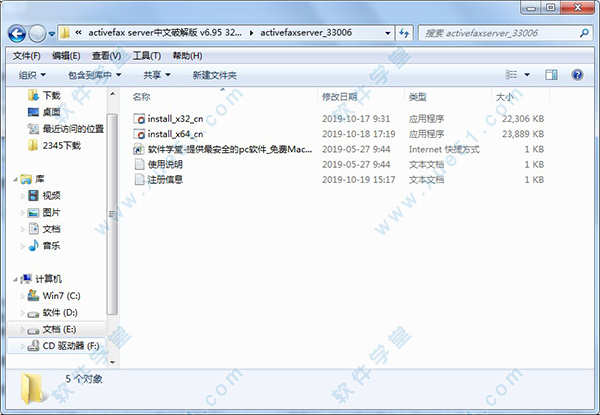 1、下载数据包,得到activefax server32位/64位安装程序和注册信息文件