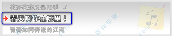 说明2、当本句歌词的最后一个字唱完后,立即敲击键盘右方向键“→ ”一下,将显示下一句歌词。伴随着歌曲的演唱节拍,一直敲击键盘的右方向键,直到最后一句歌词显示完毕;