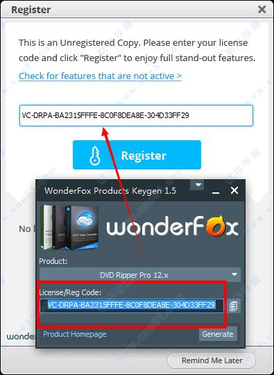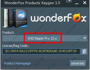 在开始破解之前请务必将所有杀毒软件关闭,启动Crack文件夹下的“Keygen.exe”注册机程序激活产品选择【DVD Ripper Pro 12.X】,点击Generate获取软件激活注册码。