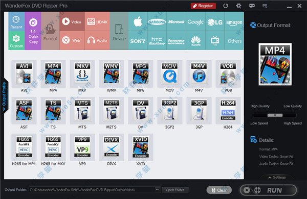 基于万兴WonderFox领先的DVD解码技术,WonderFox DVD开膛手可以让您轻松撷取任何DVD到AVI,MP4,MPG,MKV,WMV,MOV,MTS,M4V,ASF,DVC,MTS,M2TS,WEBM,FLV,SWF,VOB, F4V,3GP和3GP2。它还支持抓取DVD到MP3,AC3,AAC,WMA,WAV,MKA,OGG,AU,AIFF,FLAC和M4A等音频文件。