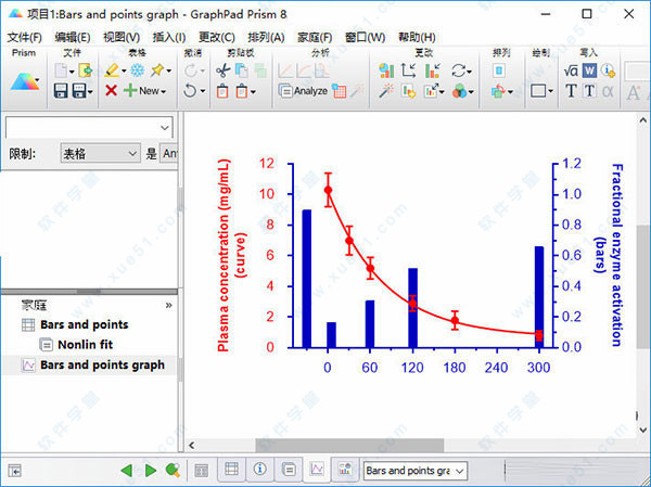GraphPad Prism 8绿色版,顾名思义,就是一个无需安装便携式版本,改软件是行业领先的医学绘图工具,能够帮助用户轻松的绘制各种三维图表,并且此应用程序已用于解决统计问题。全新的GraphPad Prism 8具有非常友好的图形用户界面,使初学者能够有效地使用该应用程序。它提供了一个循序渐进的指导,以便得到答案和图表。您还可以在每次操作结束时使用软件检查表查看和分析统计分析,以允许输入数据中可能的错误达到零。创建和编辑信息时,可以实时预览输出并编辑创建的图表。您还可以查看所有统计问题,如从输入数据中自动删除标准偏差点、比较曲线、比较模型。总而言之,GraphPad Prism是一个令人印象深刻的统计应用程序,它将允许您绘制所有类型的3D图表,以此来提高你的工作效率,从而创造更多价值。