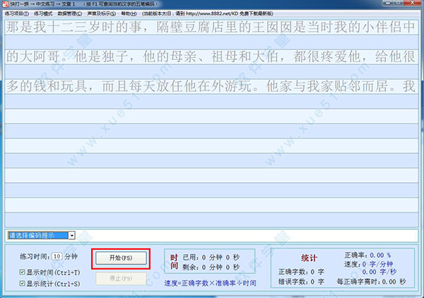 4、进入软件之后点击开始,就可以开始打字咯,点击左上角的练习项目,可以选择不同的文章和方式