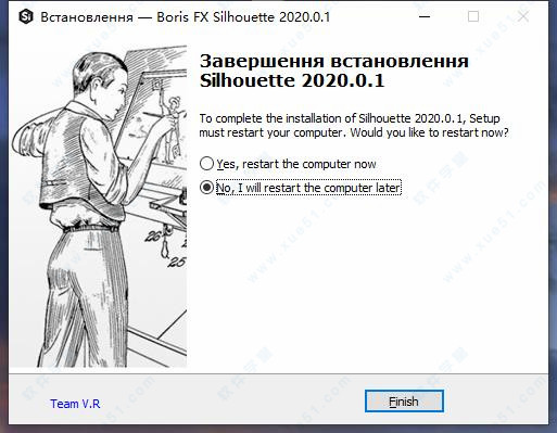 4、然后根据提示默认操作完成对软件的安装,选择待会重启电脑这一项。