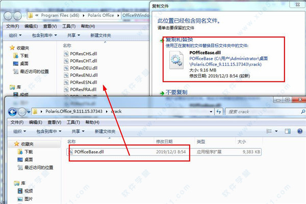 5、最后将crack文件夹下的“POfficeBase.dll”这个破解补丁复制到软件安装路径下覆盖原文件即可完成破解。
