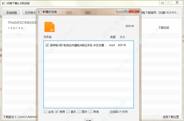 4、随后会自动弹出新建BT任务,这时候点击下载