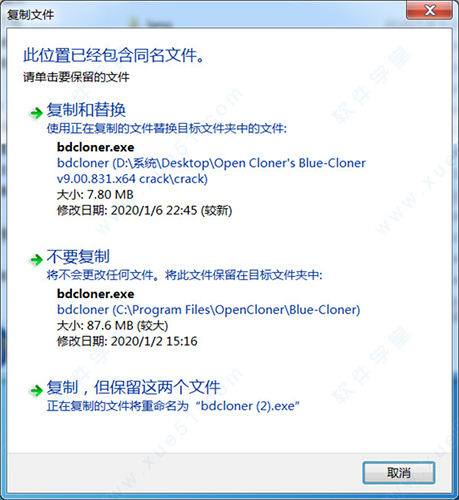2、将crack文件内破解补丁复制到软件安装目录中,并覆盖替换原文件,选择复制和替换即可激活软件